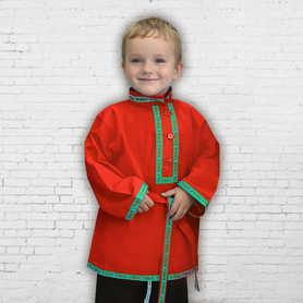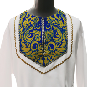 Рубаха для мужчин и детей модели «Николай» предназначается для традиционных русских праздников и мероприятий. Наряд сшит из габардина, белоснежного цвета. Орнамент «хохлома» на вороте, груди, манжетах и по низу сделан несмываемой краской – желто-зеленого цвета и по его контуру струится изящная тесьма золотистого цвета. Краска не смывается при стирке, не линяет, поэтому орнамент остается стойким на протяжении всего срока эксплуатации. К рубахе прилагается пояс с рисунком на концах.