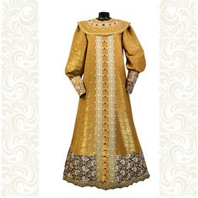 - Душегрея из парчи с баской, украшением которой является декоративная тесьма с люрексом.