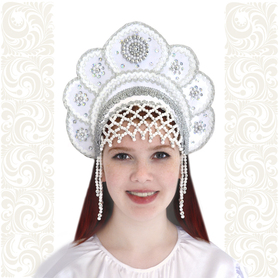 Предлагается соответствующий кокошник на голову, который хорошо дополнит Костюм.