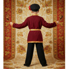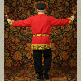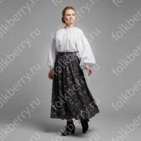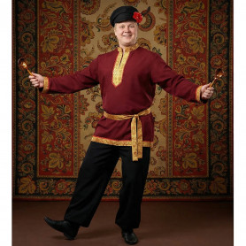 Ткань - лен небеленого цвета, плотный, мягкий, качественный. Декор, жаккардовая тесьма шириной 3 см, располагается, согласно традиции, вокруг шеи, по груди с левой стороны, на рукавах, поясе, по низу косоворотки.