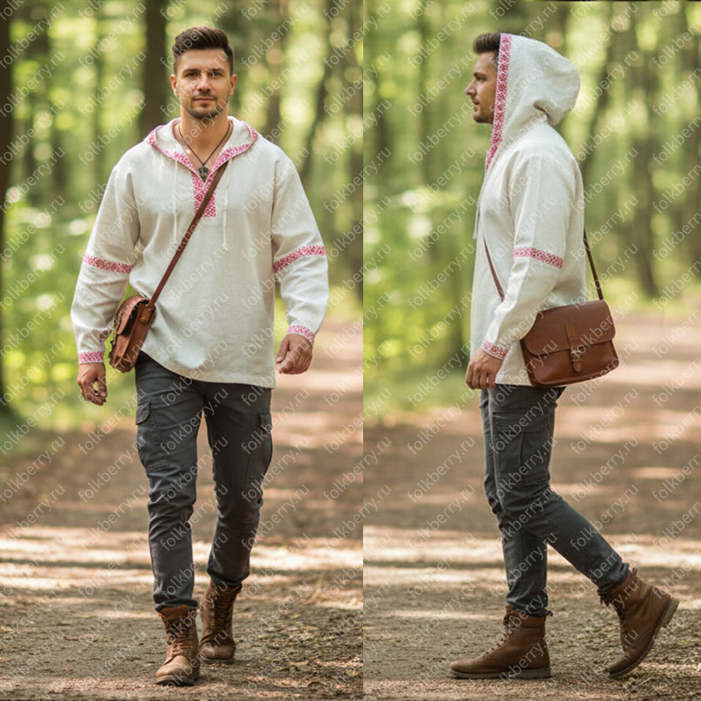 Рубаха мужская с капюшоном, небеленый лён
