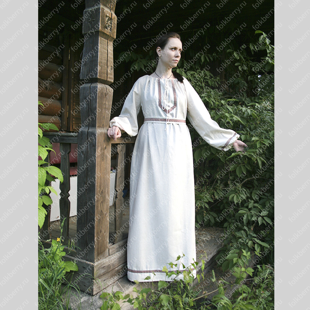 Платье "Домна" в стиле "бохо" выполнено из умягченного льна, благородного цвета "капучино".