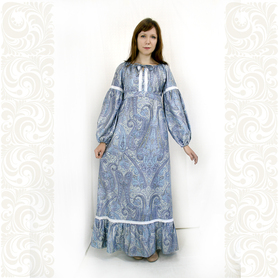 Платье сшито из натурального, умягченного льна с рисунком «Гжель».