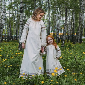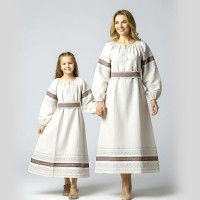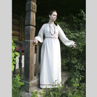 Платье «Верея» выполнено из натурального, умягченного льна. Платье А-силуэта, имеет регулируемую горловину, удобный рукав реглан. К платью прилагается широкий пояс, украшенный кружевом. По рукавам и низу платье декорировано широким бордюром из нескольких видов натурального кружева из хлопка, машинной вышивкой и вставками из белого льна. Платье комфортно, смотрится очень мило и женственно. Хорошо сидит на разного вида фигурах, в том числе на крупной и полной фигуре. Платье можно надевать как с поясом, так и без. Пояс можно надевать с другими изделиями ( например, блузой)