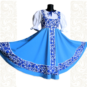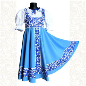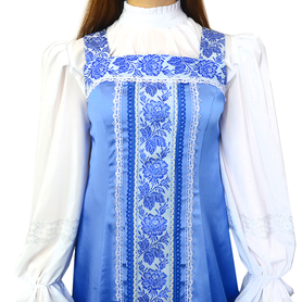 Нарядный комплект, выполненный в традиционном русском стиле, состоит из сарафана и блузы. Отлично подойдет для участия в концертах, для театральных выступлений, для славянских праздников и мероприятий.