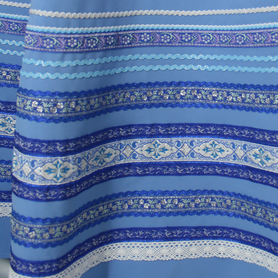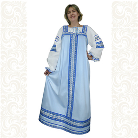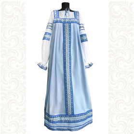 Длинный сарафан с блузой нежных пастельных цветов "Гжельские мотивы" выполнен в традиционном славянском стиле. Синий и голубой цвета - одни из любимых цветов русских девушек. Cарафан украшен жаккардовой тесьмой. Блуза выполнена из хлопка с красивыми вставками из декоративной жаккардовой тесьмы. Бретели сарафана регулируются по длине.
