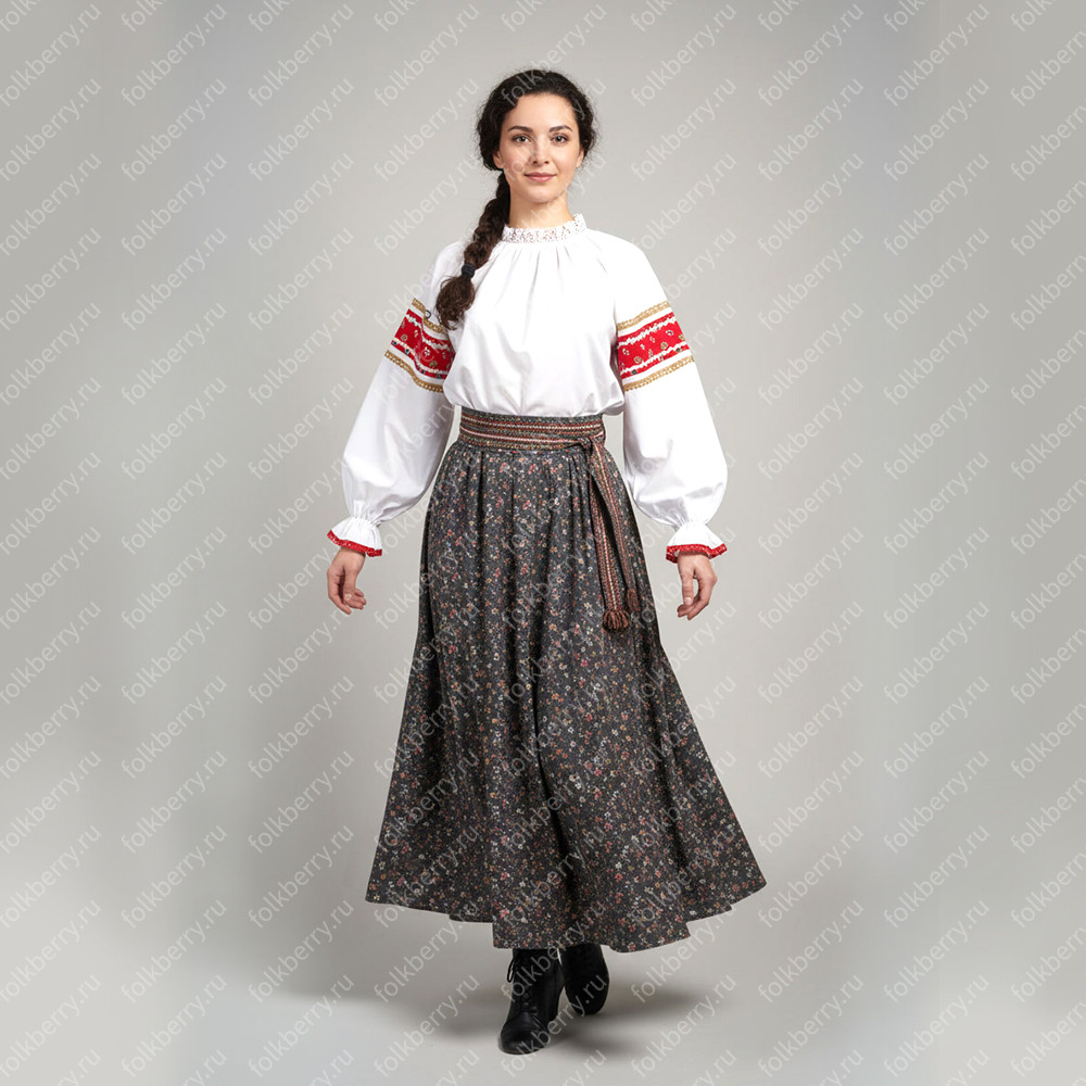 Юбка-полусолнце народная с кушаком, набивной хлопок