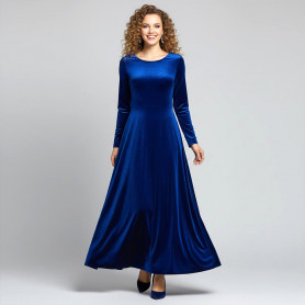 Костюм  выполнен из габардина и красиво подобранного декора в золотистых цветах. Достоинства габардина  в том, что он не мнется, не блестит, как атлас, ложится красивыми  мягкими складками, цвет не выгорает. Юбка  с оборкой, декор в золотистых цветах, по талии на  двойной резинке. Блуза  белого праздничного цвета, с баской,  рукава расширены внизу, с манжетами.   Сзади на блузе шнуровка. Она дает хорошую посадку по фигуре. Костюм предназначен для творческих  сольных и коллективных театральных выступлений.